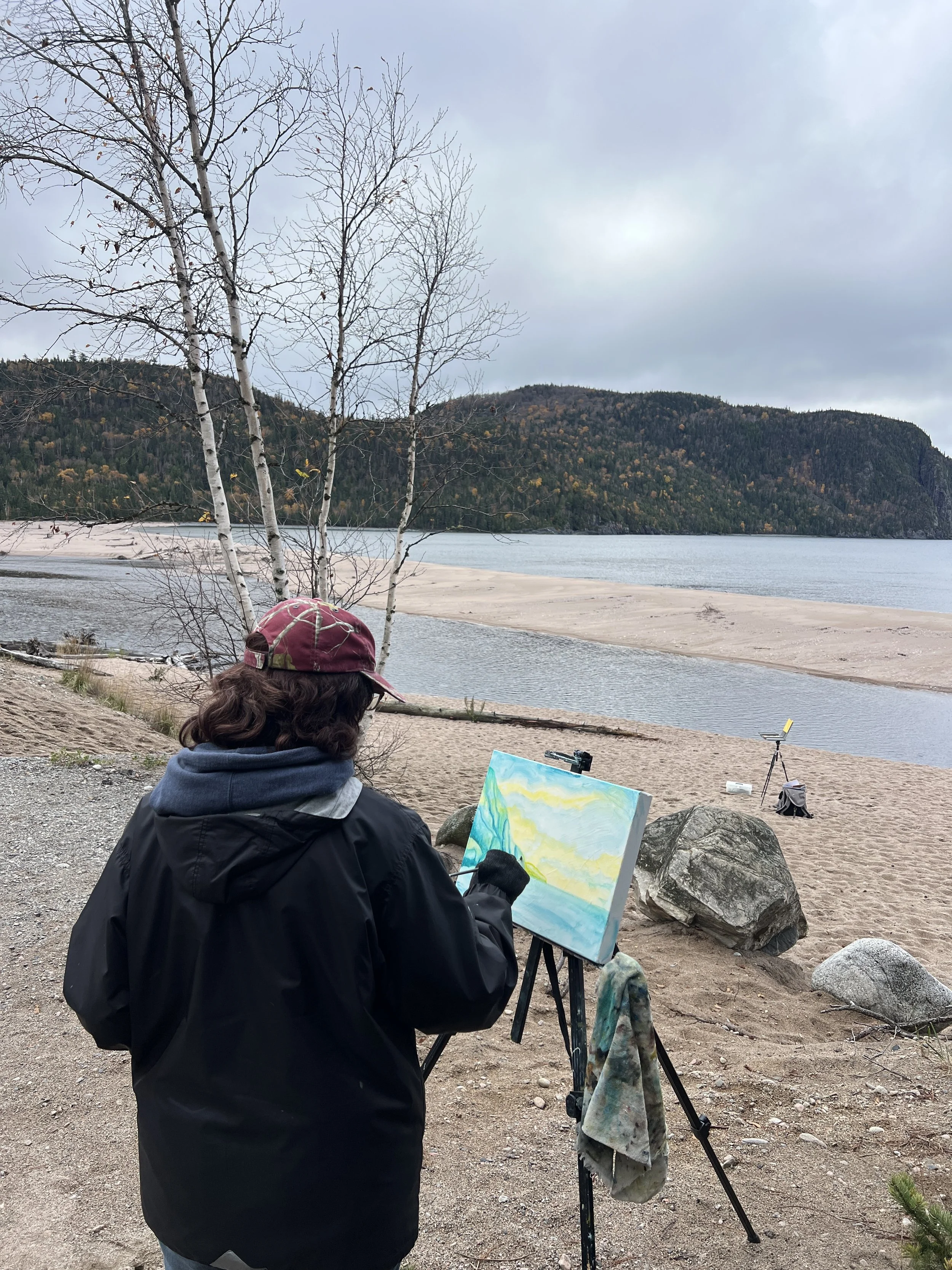 "As an artist who paints and writes for the land, I recognize that the landscapes I love are part of the traditional territories of the Anishinabewaki ᐊᓂᔑᓈᐯᐗᑭ and Cree peoples. My commitment to these waters, forests, and wildlife is intertwined with their enduring stewardship. Through my work, I will continue to honour their teachings by inspiring care for this land—not as a resource, but as a relative."